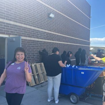 Under the expertise of Jacqueline White, students, adults, and members of the WYCTF volunteered for the Food Distribution by the Food Bank of Wyoming on the Wind River Reservation.